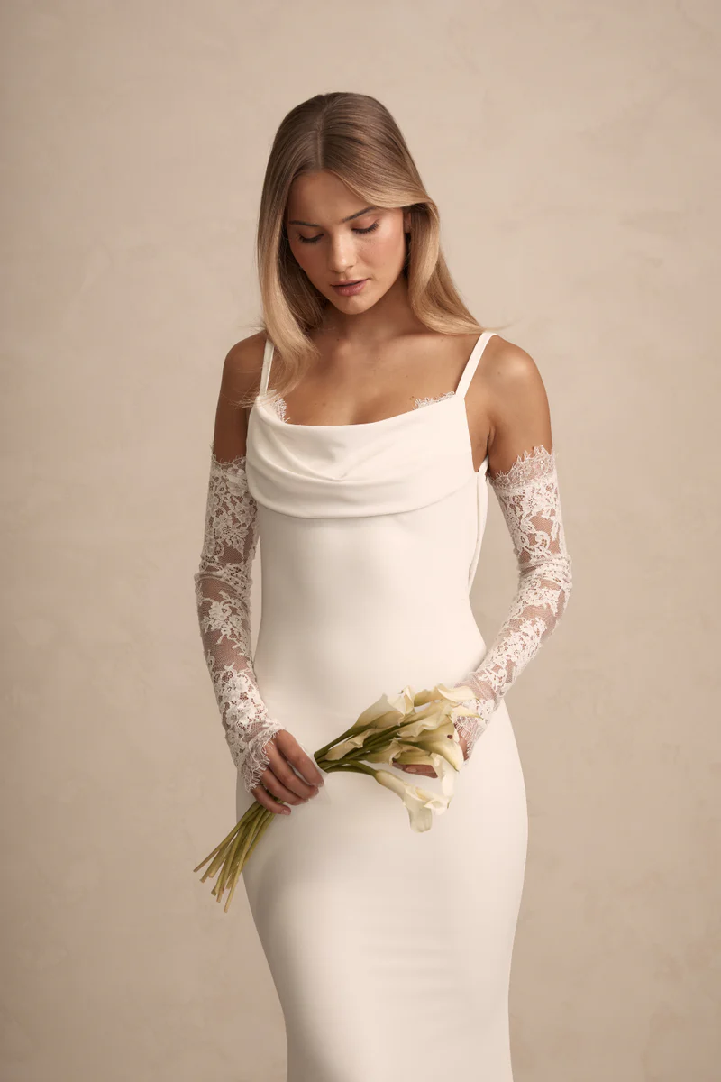 Archie V2 nods to tradition, featuring our ever-loved, iconic Archie cowl back, the feature that made the original Archie so unforgettable and adds the perfect moderns flair with her reimagined cowl neckline and a delicate peek of eyelash lace trim.