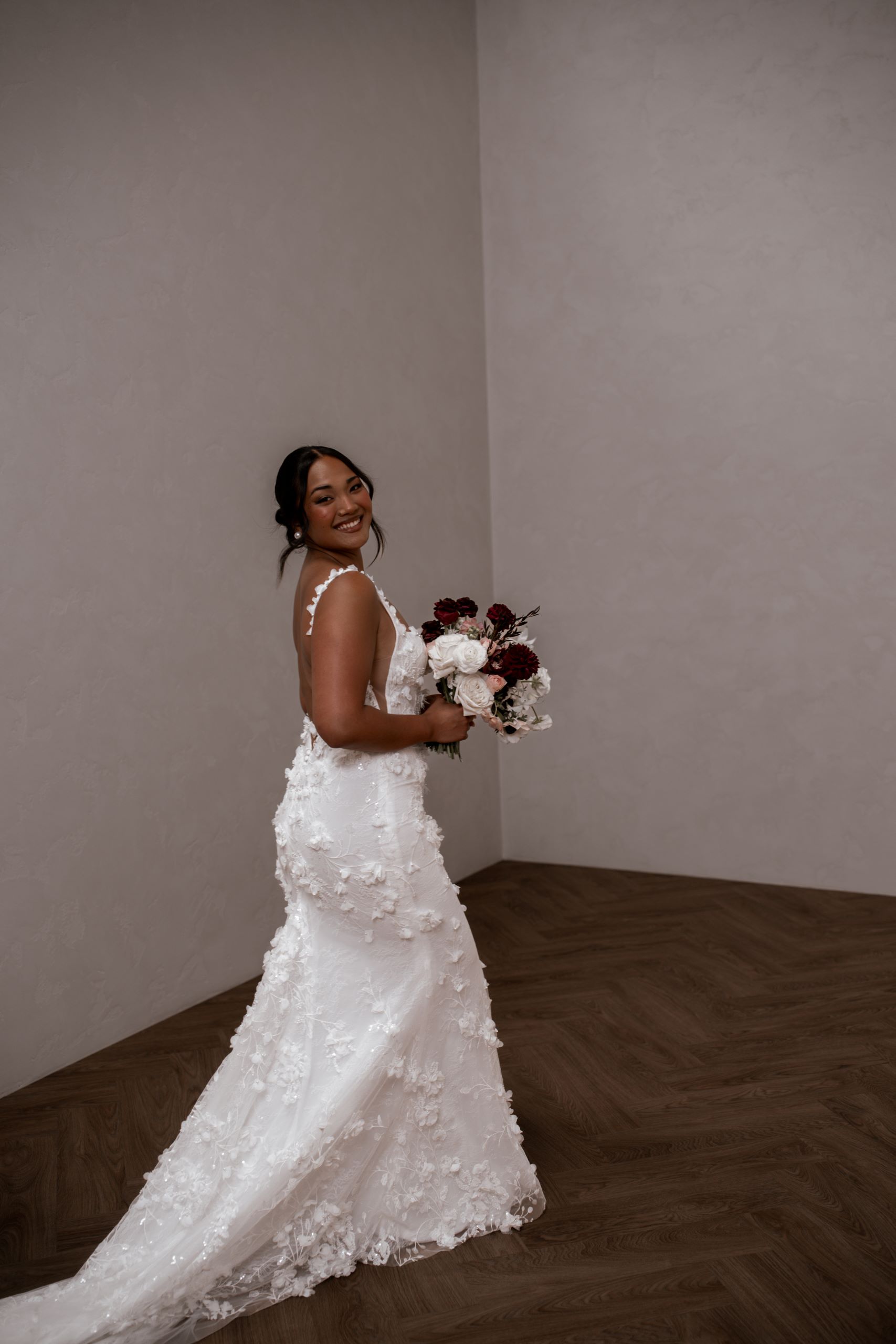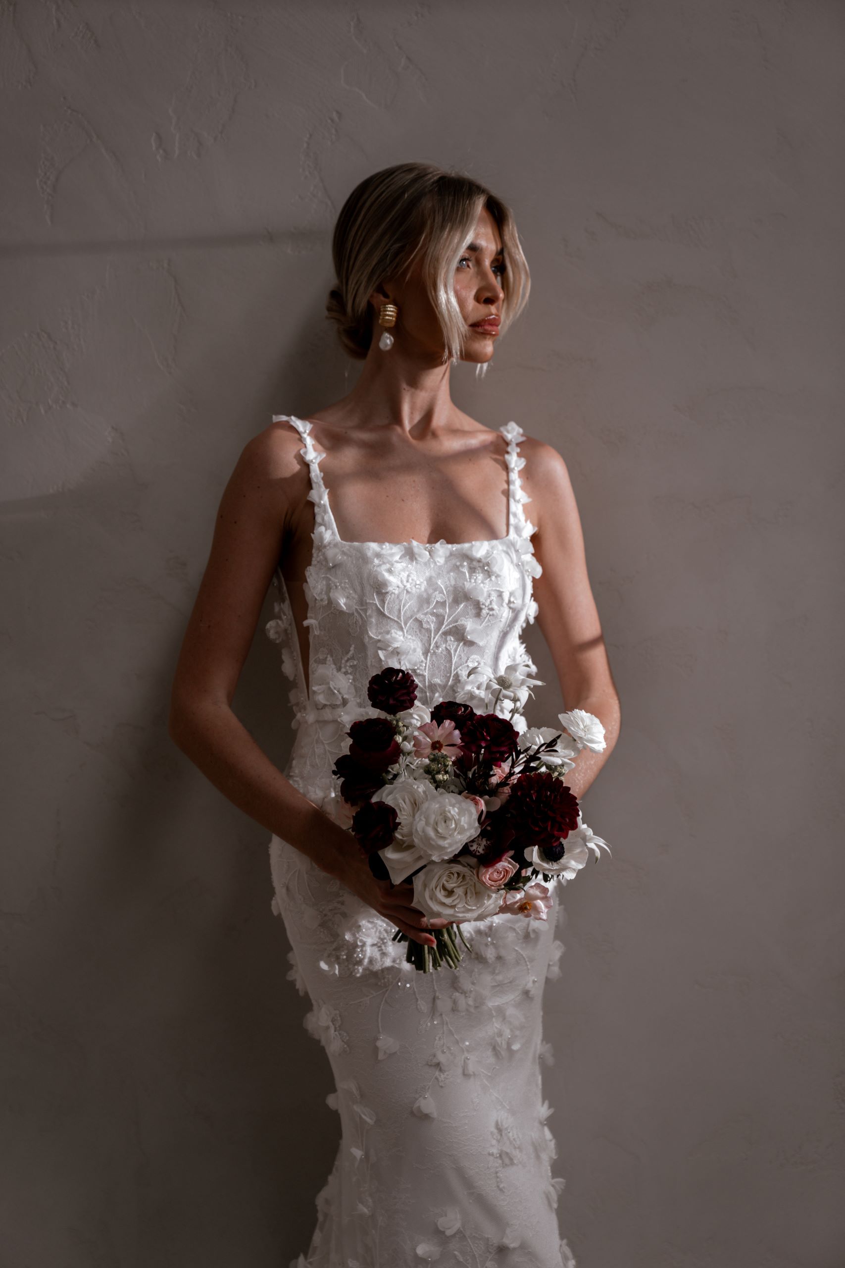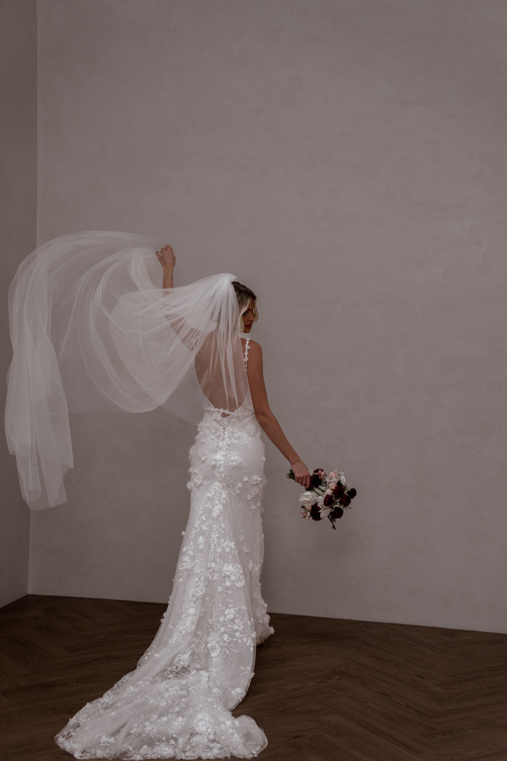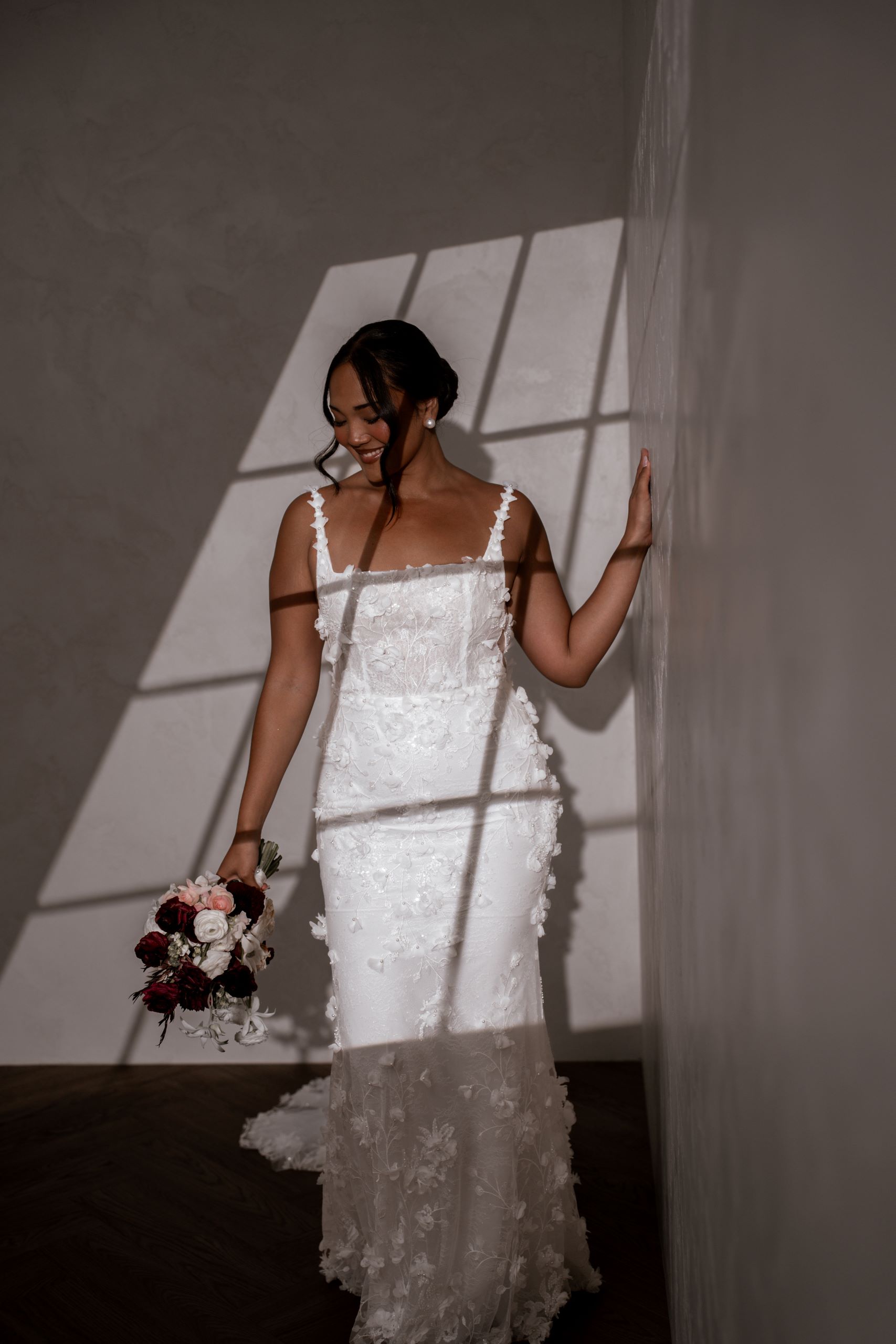 Crafted from our never-before-seen exquisite 3D embroidered petal lace, Atlas brings a touch of nature’s beauty to your special day.