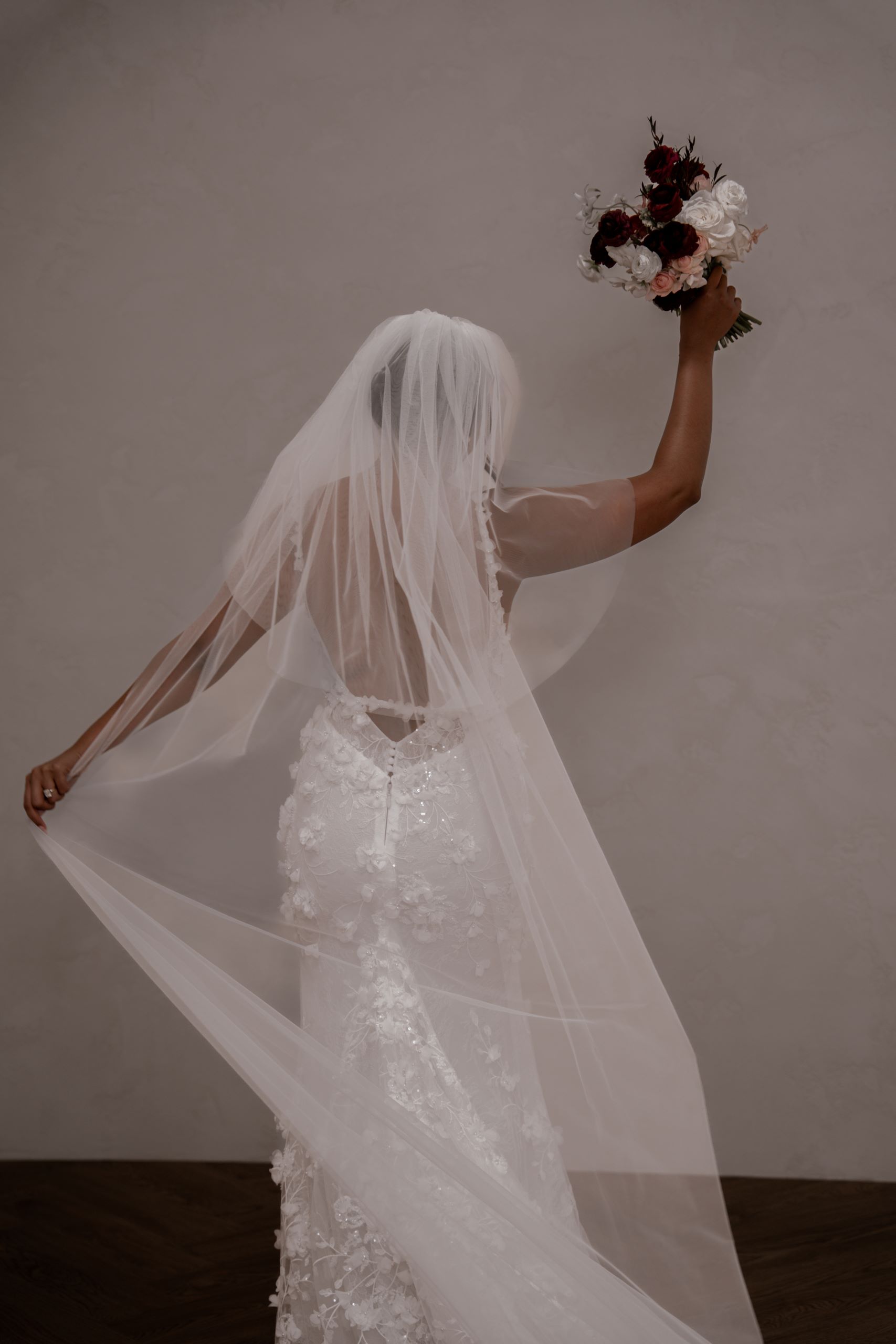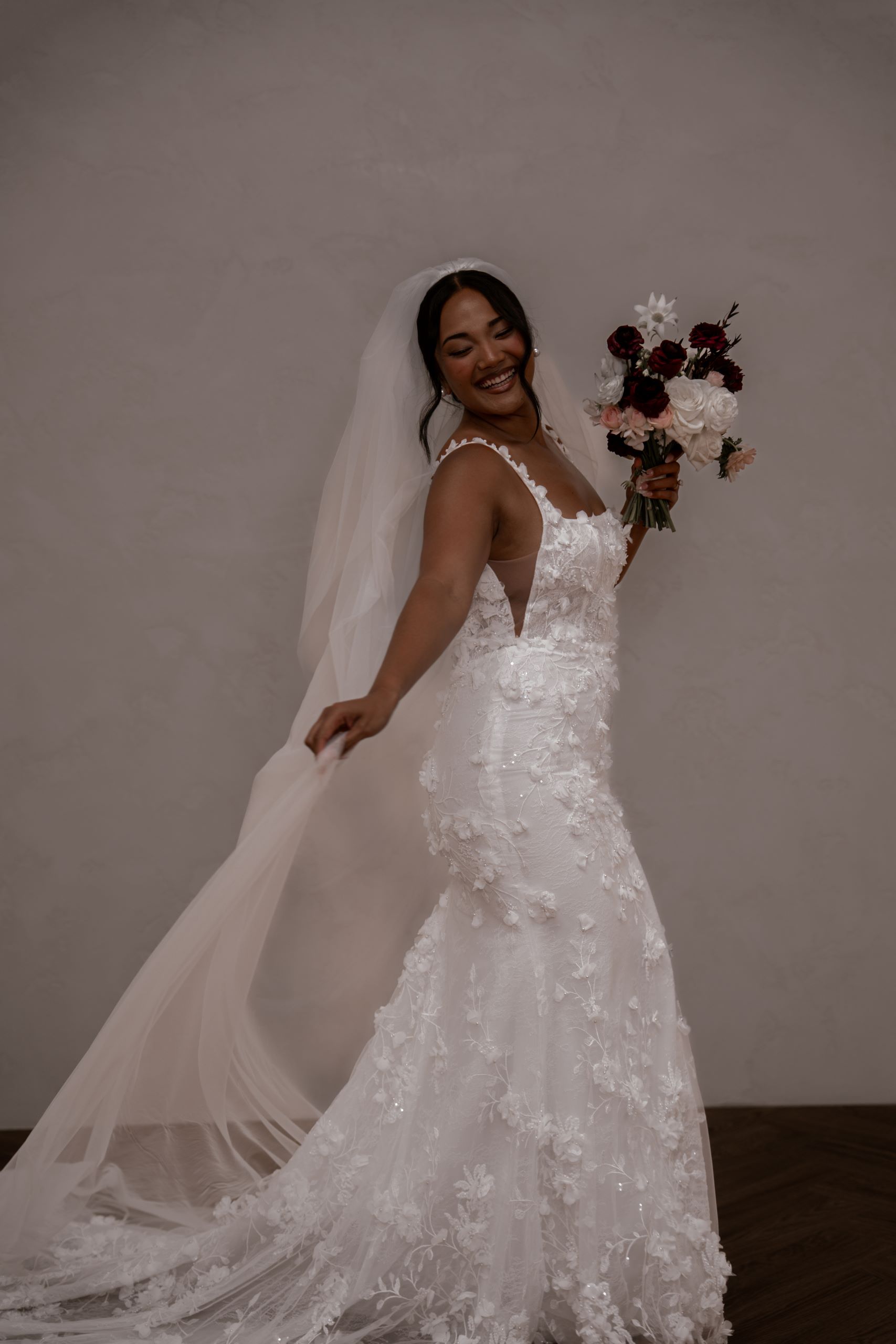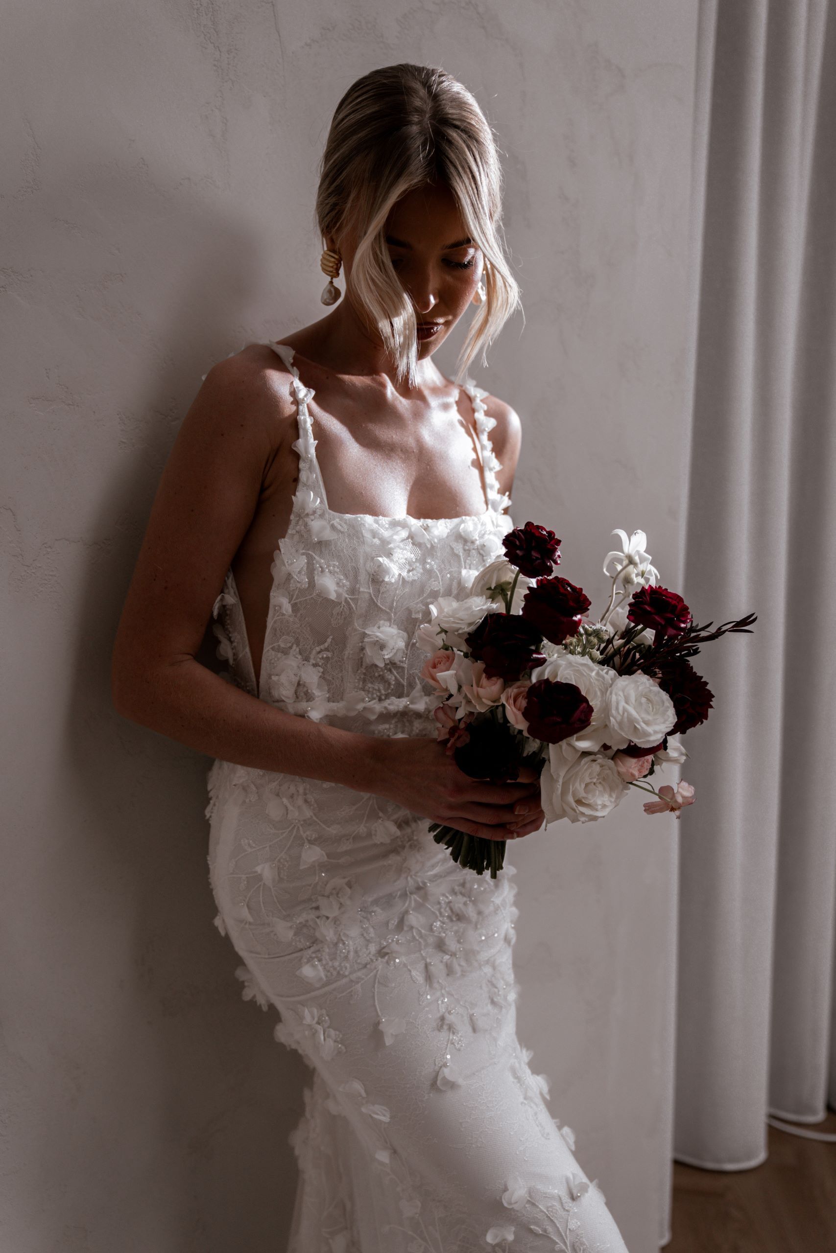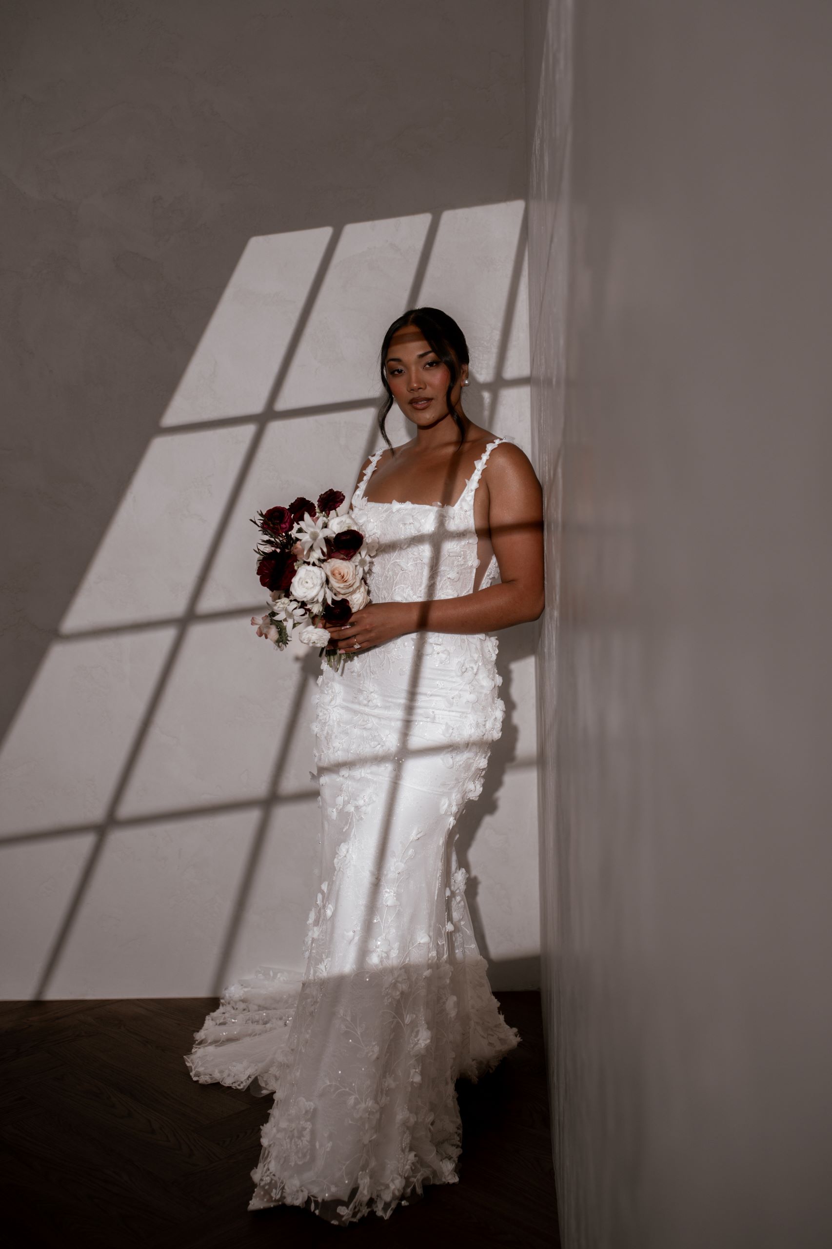 Crafted from our never-before-seen exquisite 3D embroidered petal lace, Atlas brings a touch of nature’s beauty to your special day.