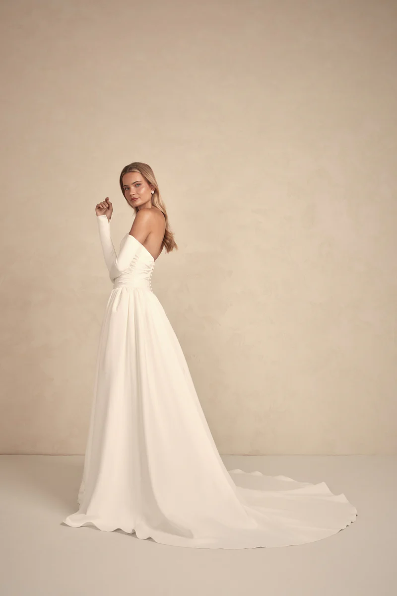 Delicate and refined – these soft stretch tulle gloves offer a modern, understated accent to contemporary bridal styling.
