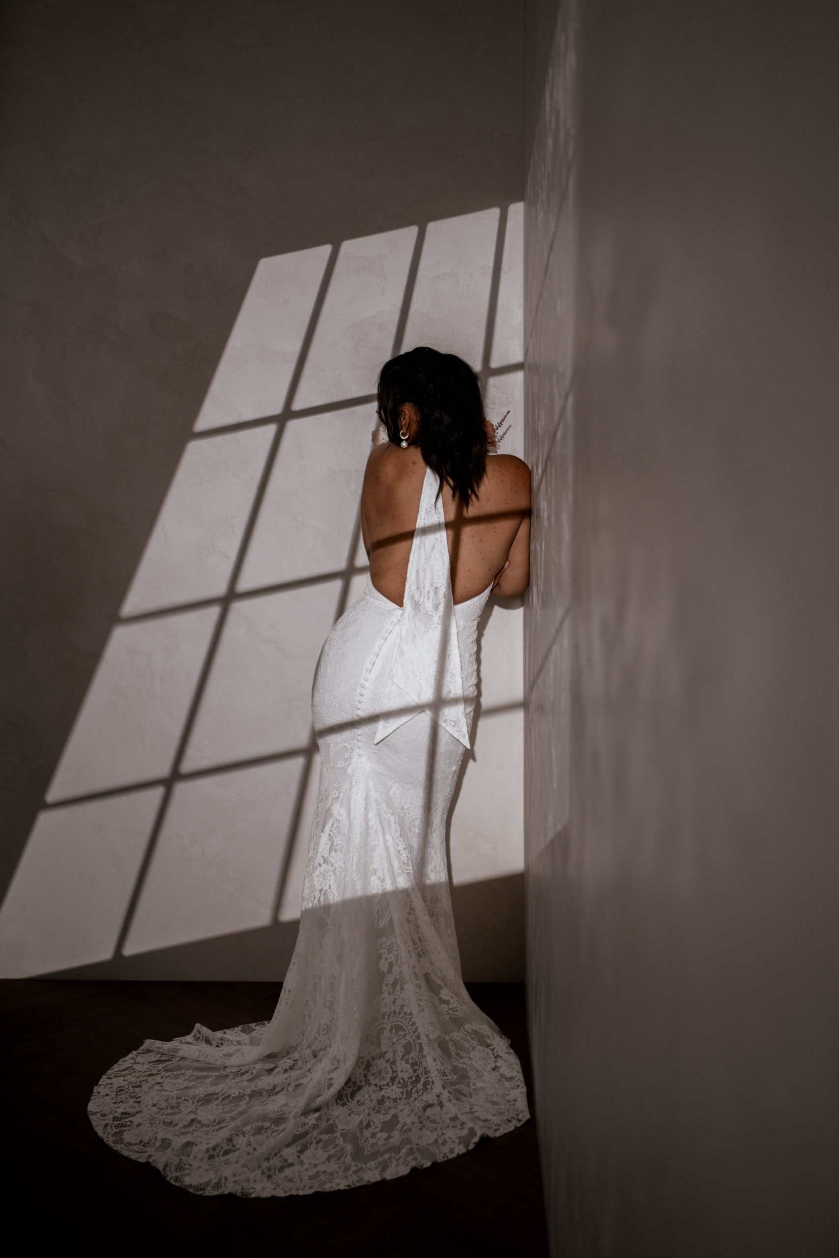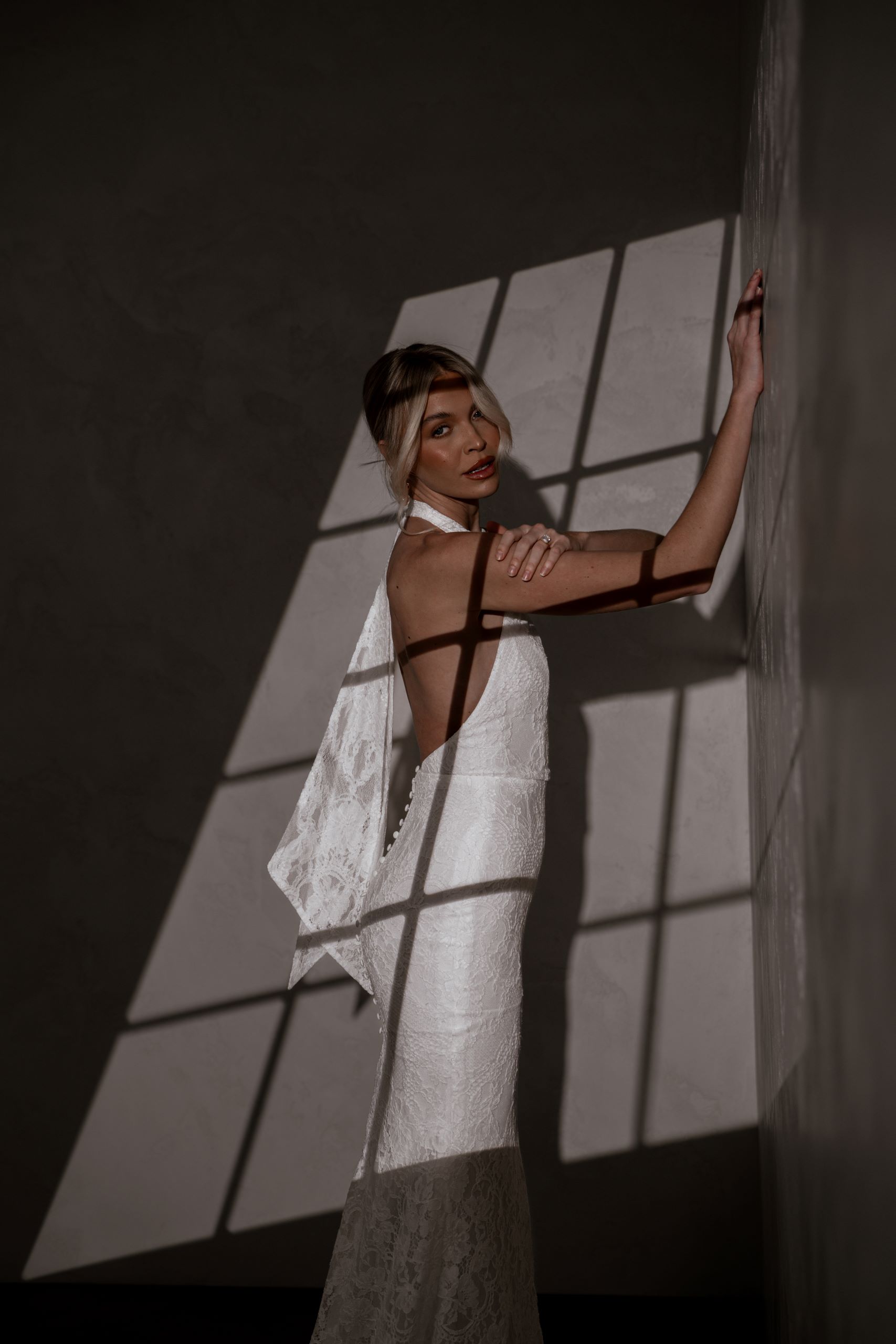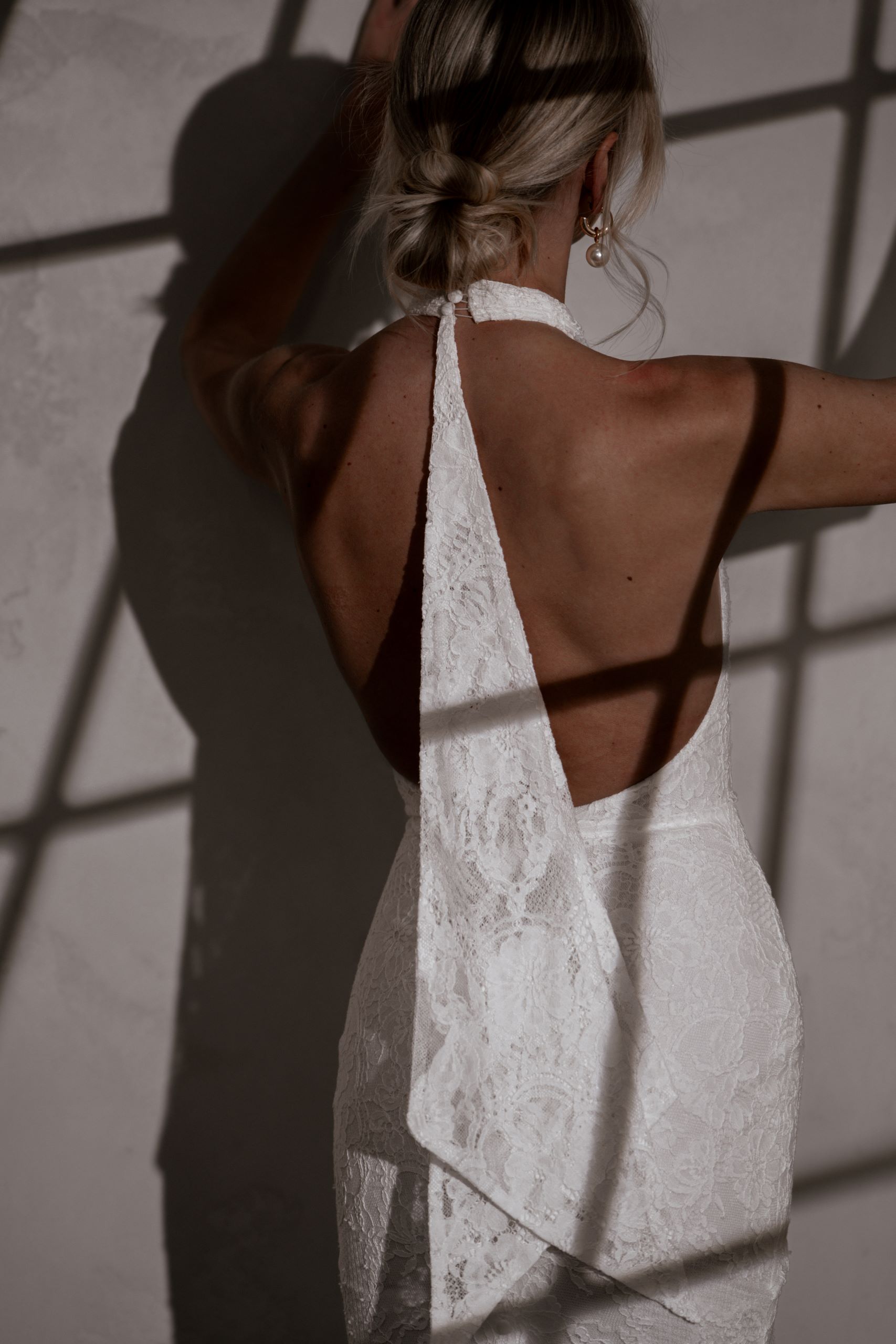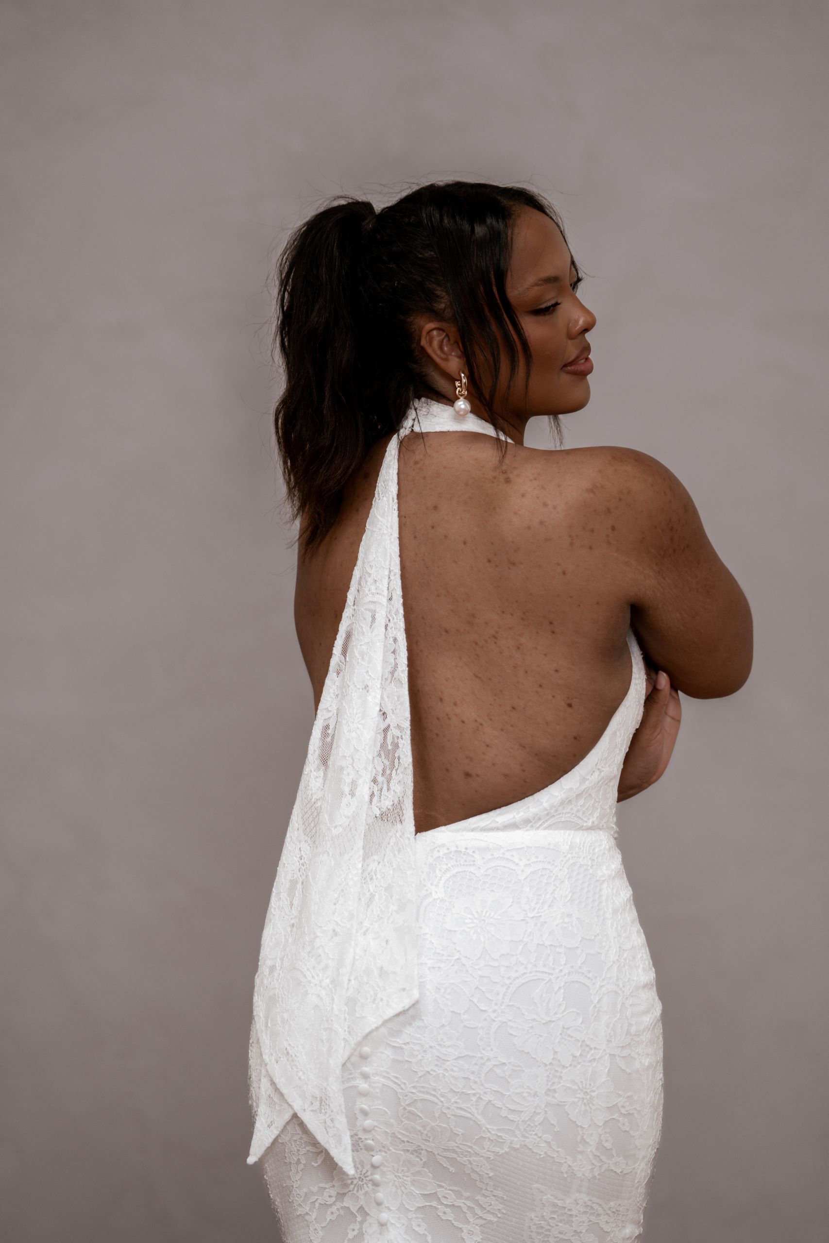 Our brand new Lace Ties create a modern spin on our otherwise classic high-neck designs Hallie.  Attaching with a small elastic around existing buttons at the neck, these ties add an ethereal, graceful effect and point of interest to the back of our darling Hallie.