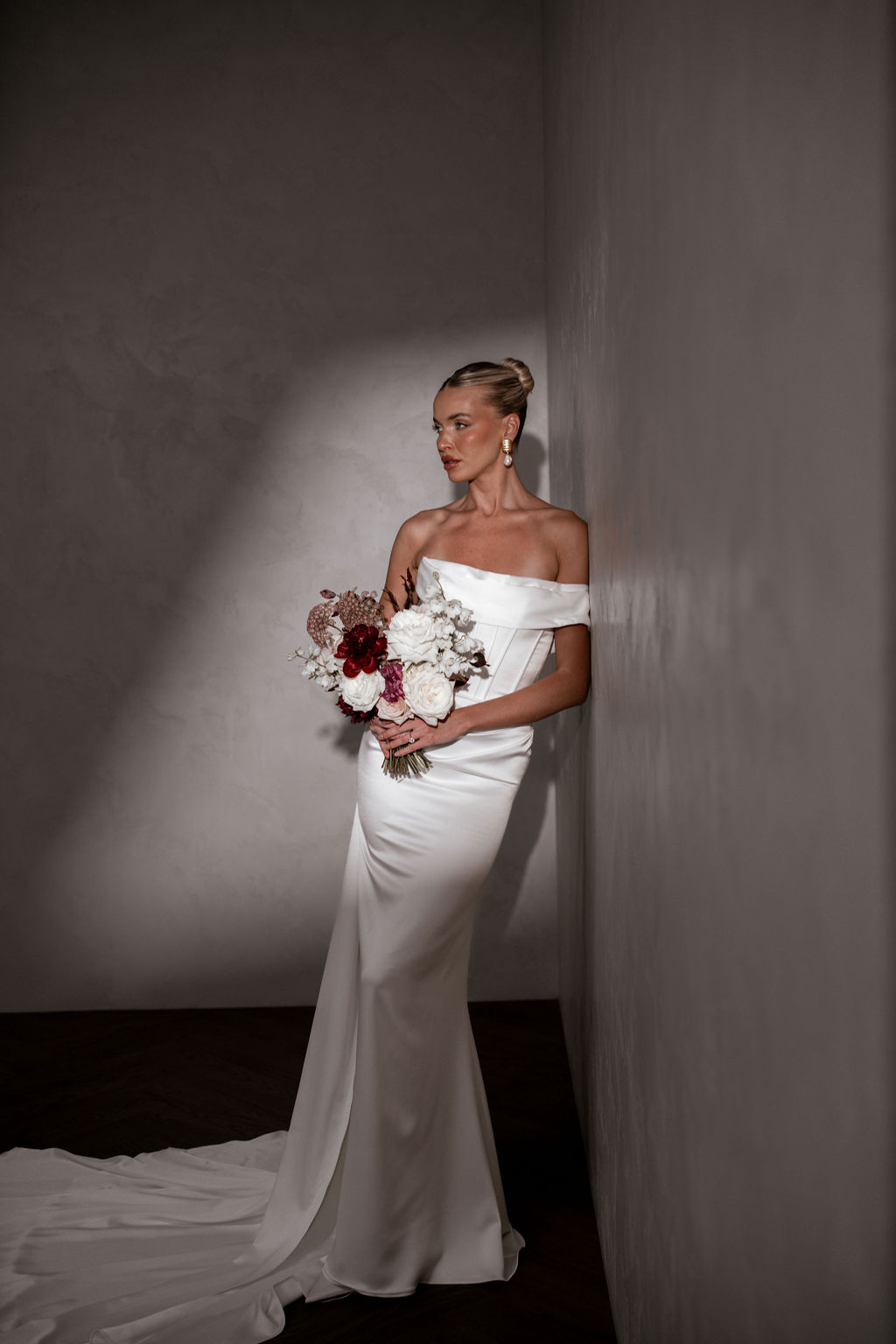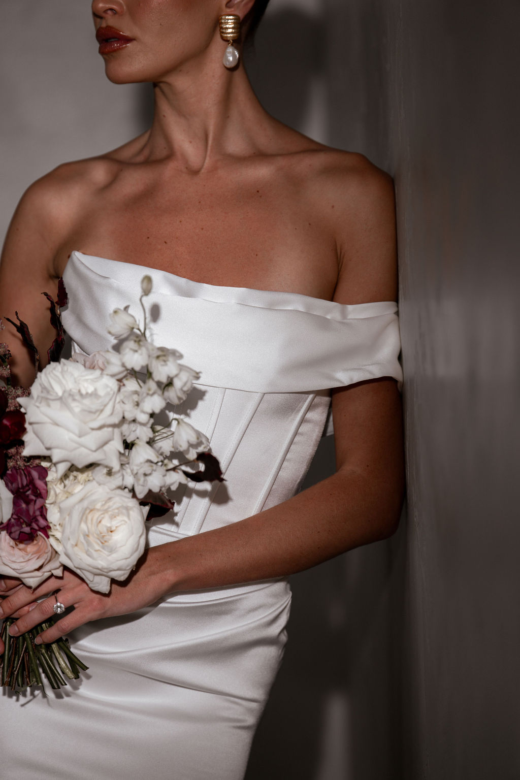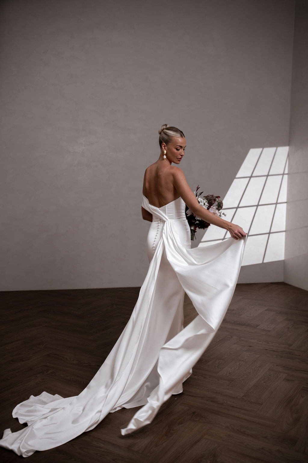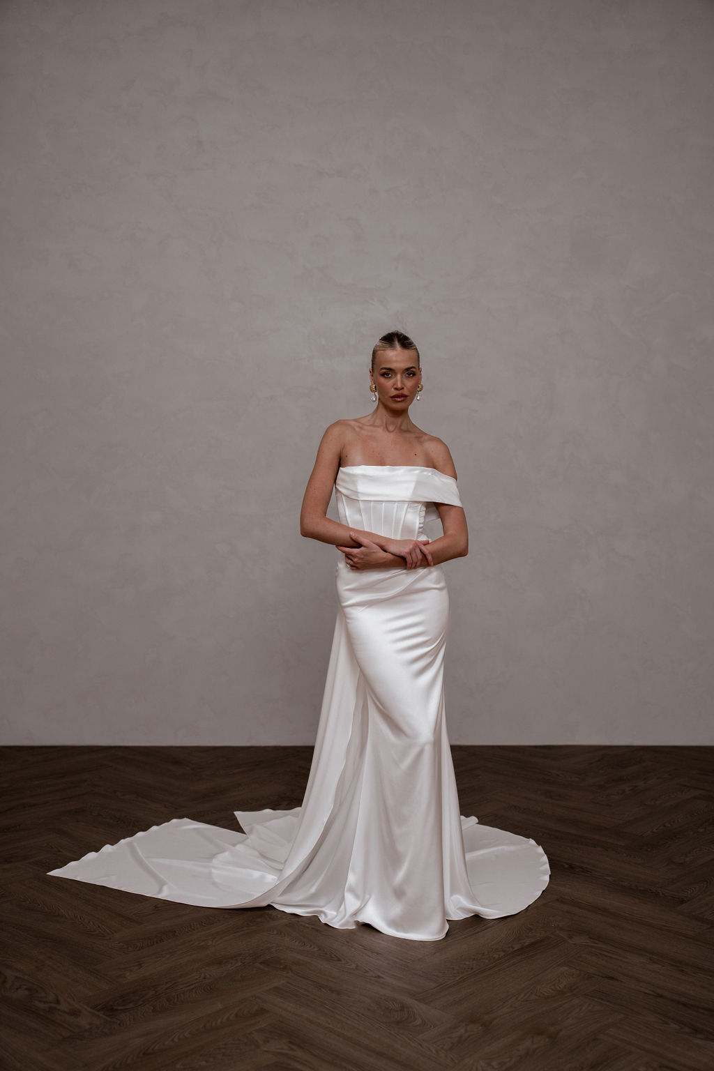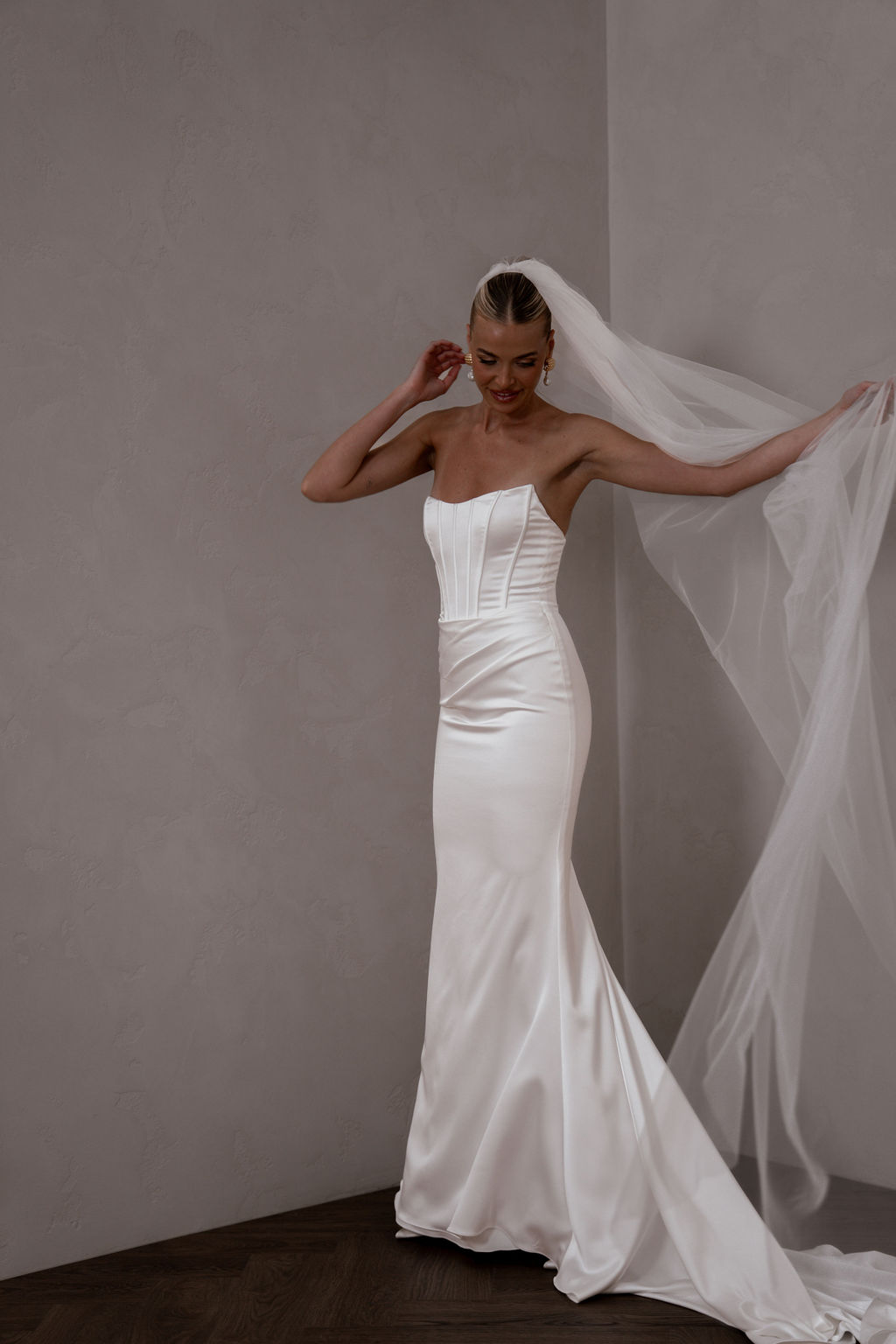Rhode Satin is breathtaking strapless satin wedding dress that effortlessly combines modern elegance with timeless romance. The striking bodice features a peaked design at the bust with statement exposed boning, sculpting your silhouette with an alluring yet refined edge.