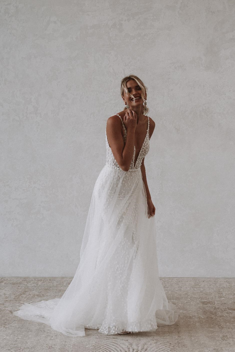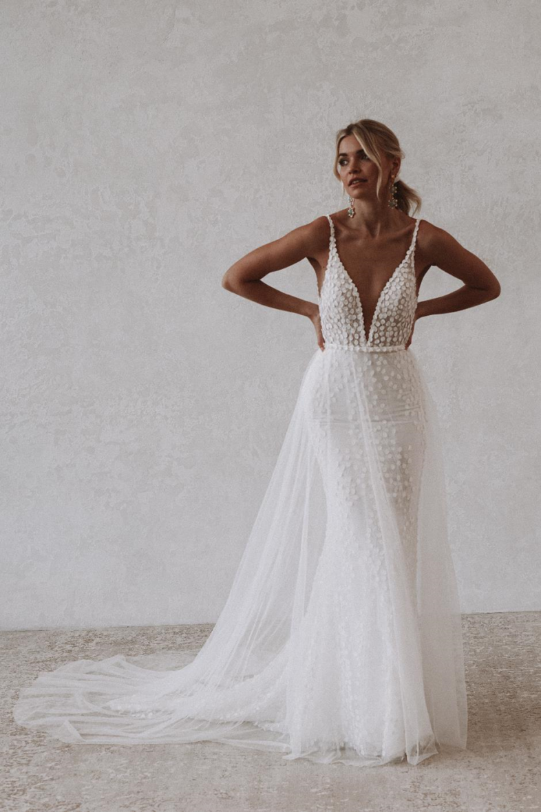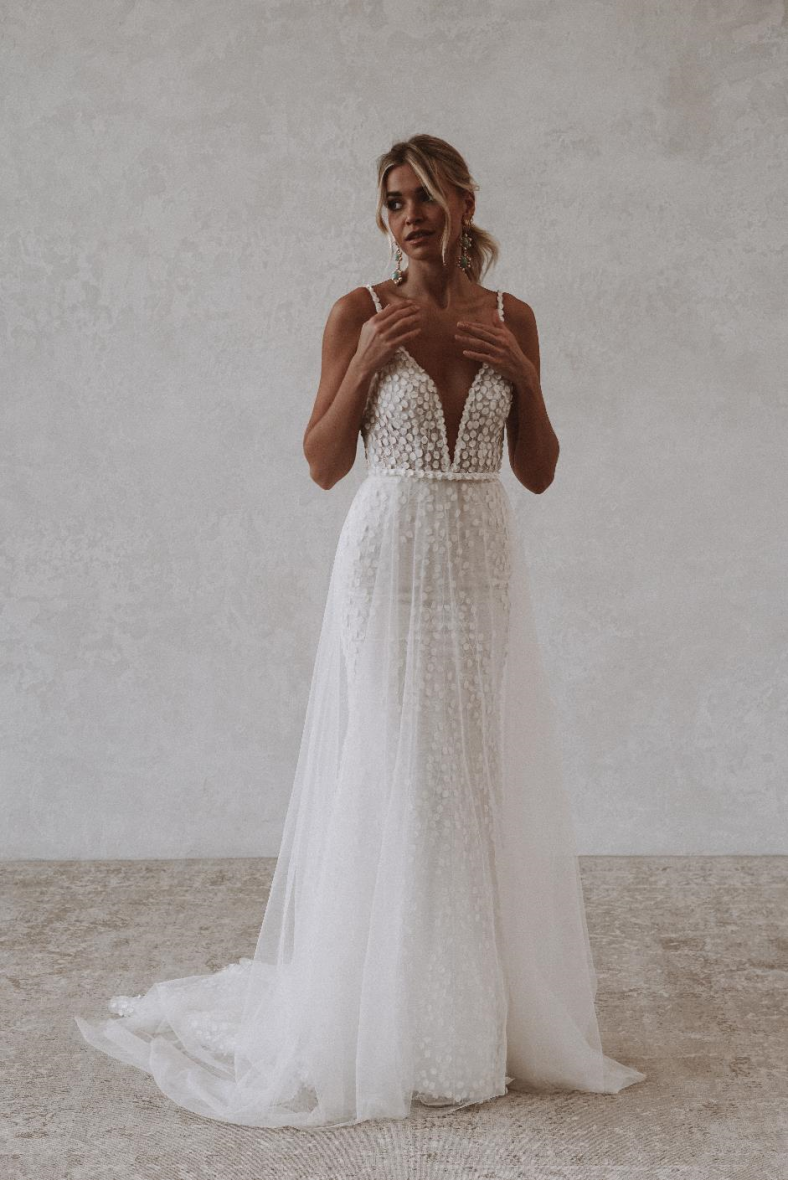 Our Removable Flowy Skirt looks amazing with any of our dresses that have a waist band! You get two looks on your wedding day! She is made from the softest tulle!