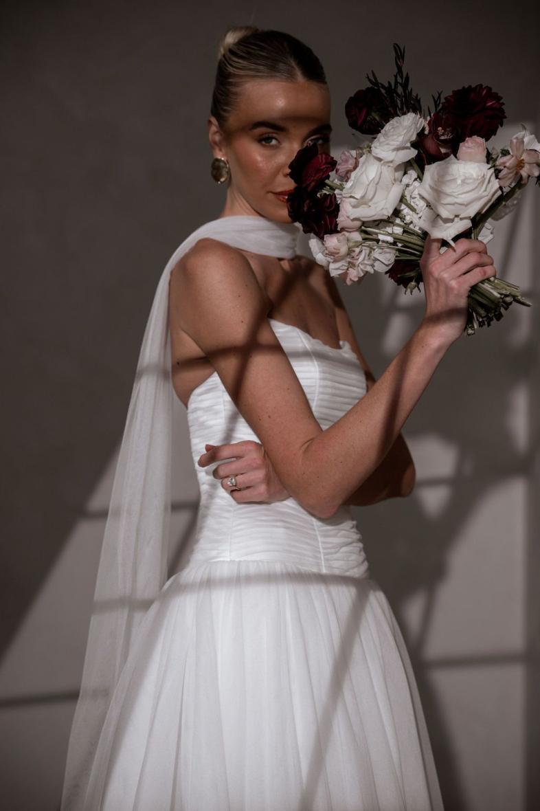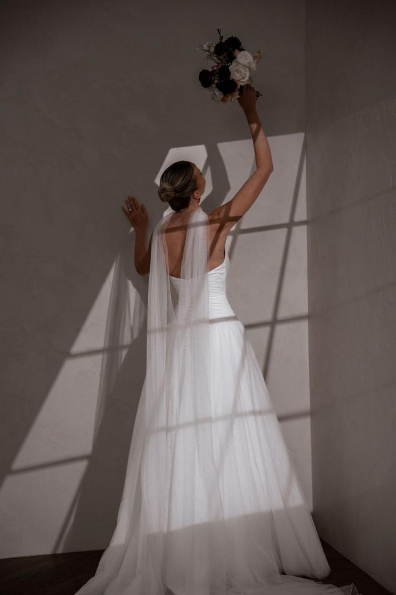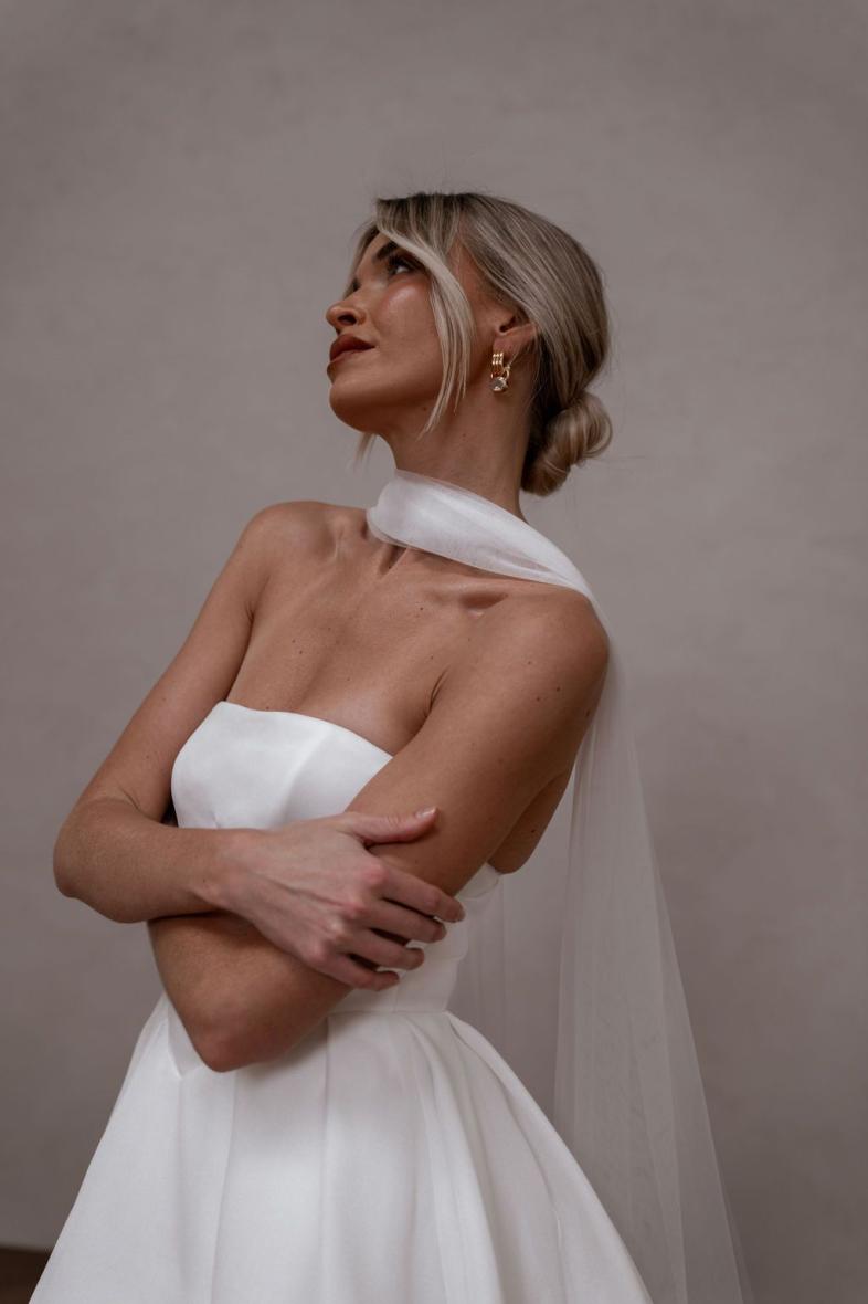 Elevate your wedding day aesthetic with the perfect touch of elegance, our Tulle Scarf. Made from our softest ivory tulle, she pairs perfectly with all MWL designs and allows for two stunning looks on your special day, with the flexibility to style her to your preference and vision.