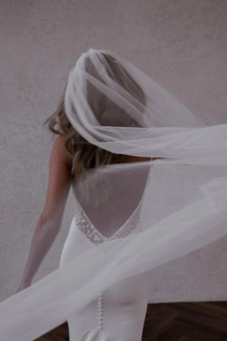Introducing our breathtaking Valley, designed to make you feel like a true vision of beauty on your special day.  Valley’s design features a showstopping contrast of classic French Crepe and a stunning floral 3D lace back detail that is both timeless and feminine.